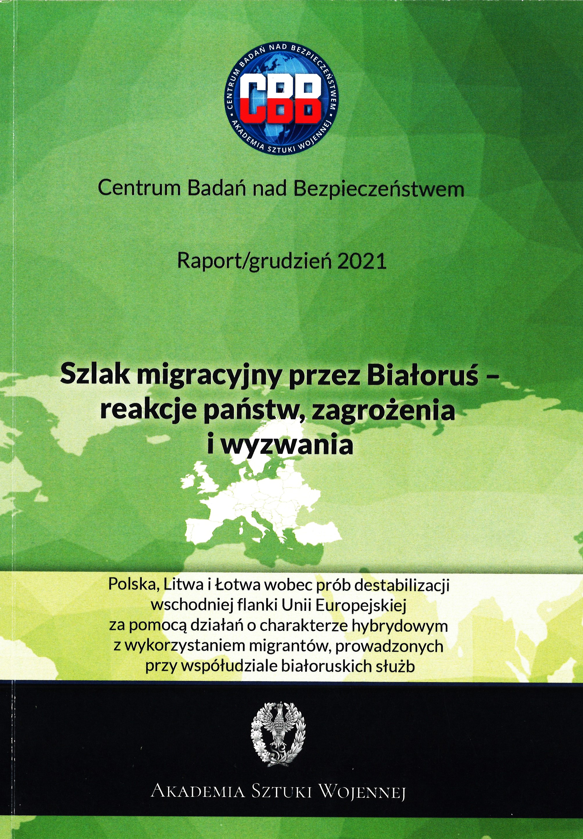 Na okładce: Raport/grudzień 2021. Polska, Litwa i Łotwa wobec prób destabilizacji wschodniej flanki Unii Europejskiej za pomocą działań o charakterze hybrydowym z wykorzystaniem migrantów, prowadzonych przy współudziale białoruskich służb.