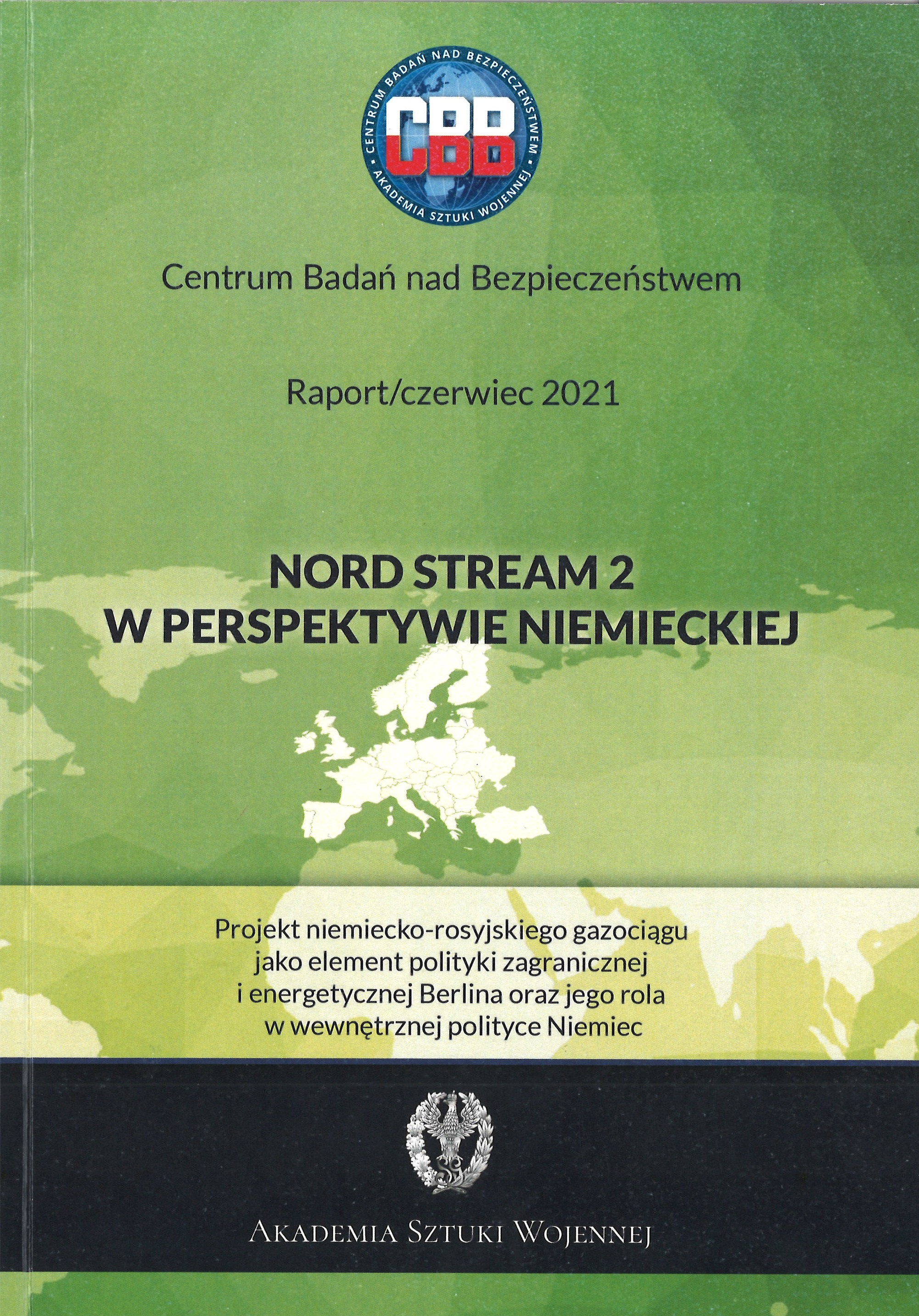 Na okładce: Raport/czerwiec 2021. Projekt niemiecko-rosyjskiego gazociągu jako element polityki zagranicznej i energetycznej Berlina oraz jego rola w wewnętrznej polityce Niemiec.